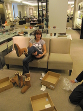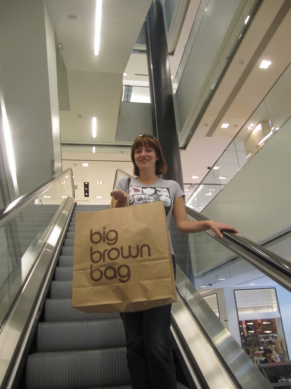 Hierna kwamen we langs Bloomingdales. Ik had al voorzichtig in wat winkels gezocht naar Uggs, maar ik kon ze niet vinden (o.a. bij Macy's). Ramon wees me op Bloomingdales en adviseerde me daar eens te kijken. We liepen er binnen en zag de mooiste schoenen en tassen staan van echt dure merken zoals Dior en Louis Vuitton. En daar stonden ze dan: UGGS!!! Wanneer een trend alweer voorbij is, dan wil ik iets ook dus ik had me voorgenomen om Uggs te kopen en dat is gelukt! Ik ben dolgelukkig met mijn hippe laarsjes. Skinny jeans erop (ook iets waar ik nu pas meekom) en go! Na het afrekenen kreeg ik mijn mooie Uggs in een bruine papieren tas.... deceptie... ik verwachtte een mooie chique tas. Ramon legde me uit dat juist die 'Big Brown Bag' helemaal hip is en HET teken dat je bij 'Bloomies' gekocht hebt..... wist ik helemaal niet! Later zag ik bij de kassa inderdaad dat ze die zelfde bruine papieren tassen ook verkochten! Apart hoor!