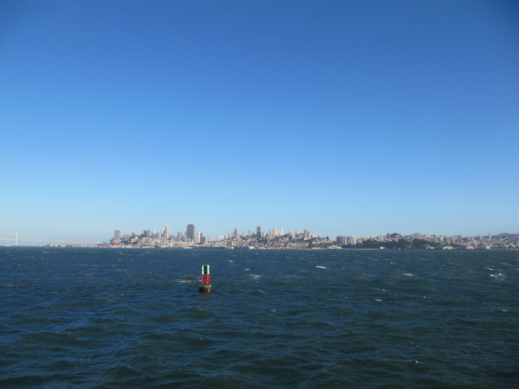 Per boot vertrokken we vanaf de pier naar deze voormalige gevangenis waar de zwaarste criminelen van Amerika gevangen zaten. Het waaide flink, maar wij zaten buiten op het bovenste dek om te genieten van het het uitzicht op de stad. Terwijl we dichter bij 'The Rock' kwamen, gingen we verder af van San Francisco en keken we uit op de prachtige skyline van de stad inclusief de Golden Gate Bridge die we eerder die dag bezocht hebben.