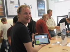 Ook de Apple store ging pas om 10 uur open en toen we eraan kwamen om 9:55 stonden er 35 man te wachten voor de deur. Om 10 uur stormden we naar binnen om te spelen met de ipad. Eerlijk is eerlijk, het is een super leuke gadget, maar we hebben 'm toch laten liggen.