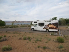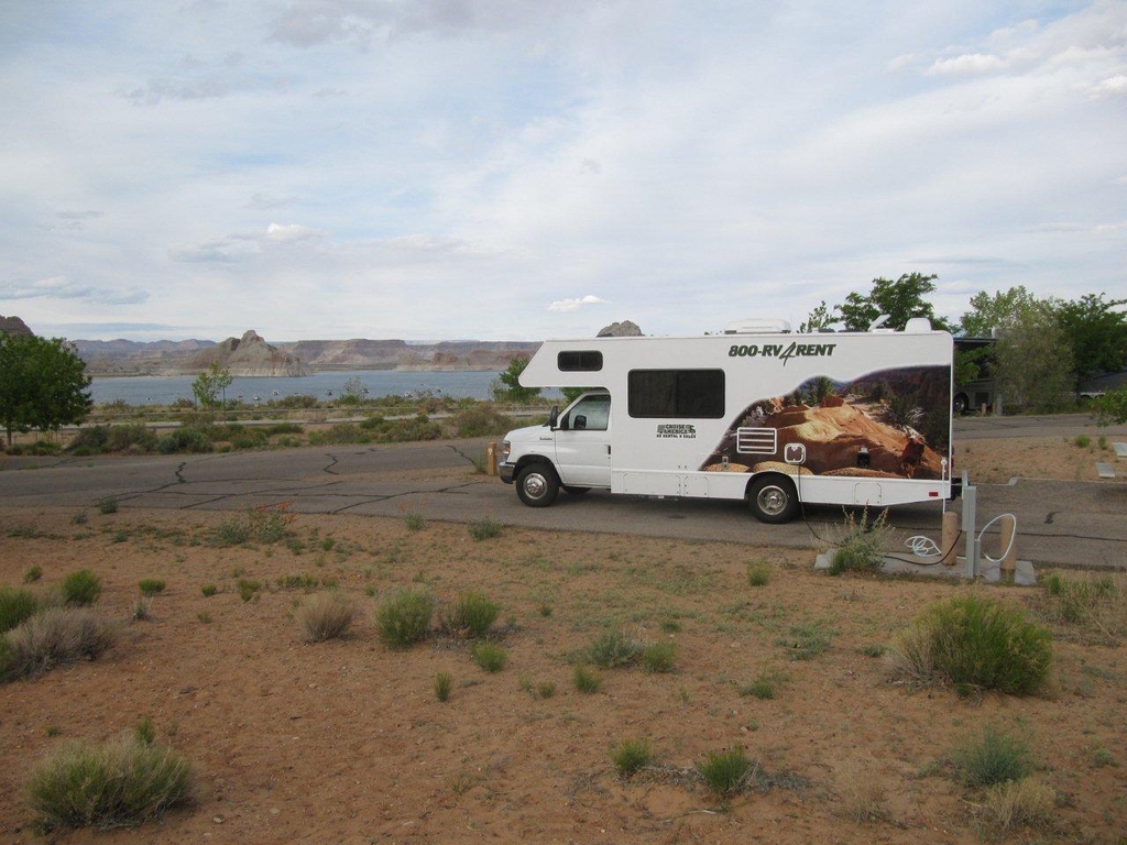 Met een klein stukje omrijden vanwege een navigatie foutje (verkeerde adres ingevoerd) kwamen we aan bij Lake Powell. Dit kunstmatige meer en het gebied eromheen wordt beheerd door 1 hele slimme zakenman. Zowel het hotel, als RV park en alle boottocht en bootverhuur maatschappijen zijn van 1 eigenaar en 1 bedrijf. We kwamen hier aan en we konden het RV park niet meteen vinden. Ingrid ging even bij de receptie van het hotel vragen waar we heen moesten, kwamen er echt buslandingen Japanners het gebouw in. Het is hier dan ook voor het eerst druk en echt commercieel. De plek waar we staan is er gelukkig niet minder om en ook de faciliteiten zijn in orde.