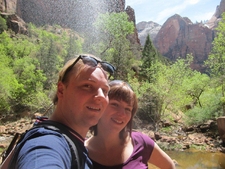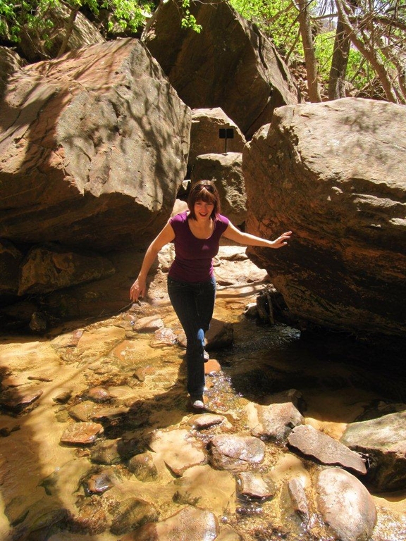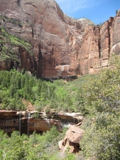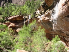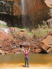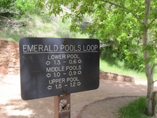 Zo gezegd vertrokken we 's ochtends weer naar Zion. Na een bezoekje aan de supermarkt en een ontbijtje in onze camper op de Zion parkeerplaats, trokken we het park in. Vandaag een korte 'trail' naar de Emeralds Pools (Lower, Middle & Upper). Deze trail zou maar een uurtje duren en was daarom zeer geschikt voor de voormiddag (dat is ochtend in het Belgisch ;-)).