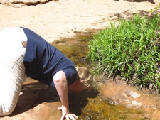 De trail was weer heel anders dan eerdere wandelingen die we gemaakt hebben. De watervallen die we zagen waren een stuk minder vol dan in bijvoorbeeld Yosemite, maar het bijzondere is juist dat er in deze rotsachtige woestijnomgeving toch water is! Op de rode rotsen gaf het een heel mooi effect. Op de terugweg merkte we goed dat we echt in de woestijn liepen, het was namelijk bloedheet. Na 2 uurtjes (foto's stops, toch even hier kijken, even daarop klimmen), een frietje en een cheeseburger vertrokken we naar Page.