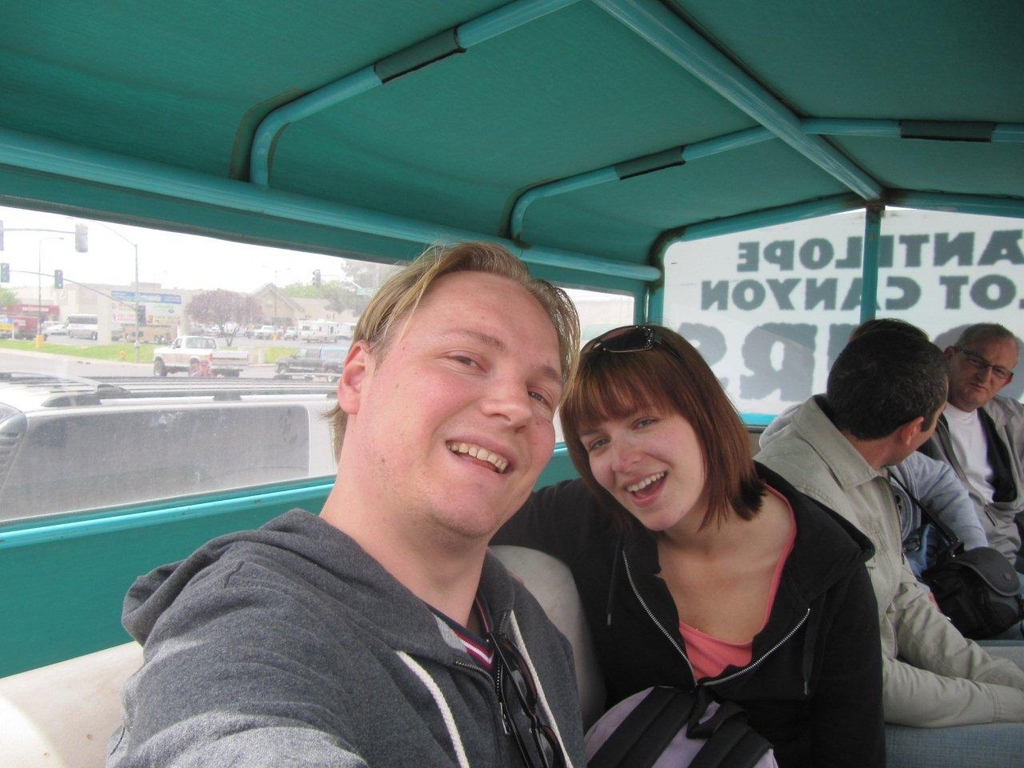 Vannochtend werden we voor het eerst wakker door de regen. Het moest er natuurlijk een keertje van komen. Op een buitje na van een uurtje in de namiddag bij Zion hebben we nog geen regen gehad. En juist nu we in woestijngebied staan, regent het! Ingrid kreeg het een beetje benauwd ivm de excursie naar Antelope Canyon die gepland stond om 10:30 waarbij licht noodzakelijk is en regen strikt verboden.