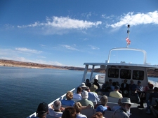 In de namiddag gingen we (samen met zo'n 80 'actieve senioren') een boottocht maken over Lake Powell. Inmiddels was de zon goed doorgekomen en genoten wij van het mooie weer en de dito omgeving. We kwamen langs Glenn Canyon Dam die we vandaag ook nog even bekeken hebben en de buitenkant van Antelope Canyon.