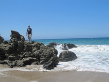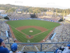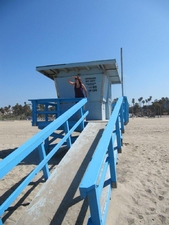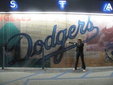 Daarna nog even gezwommen en klaar maken (voor de file naar) het honbalstadion van de LA Dodgers. Zij speelden vanavond tegen de Padres. We hadden meteen aanspraak met een (dronken) Amerikaanse jongen die ons nog wat uitlegde over de wedstrijd. Dit was ook wel nodig, want met onze honkbal kennis was het niet zo goed gesteld. We vertelden hem waar wij vandaan komen ('Holland het land van Amsterdam, hoeren en wiet) en we stegen in achting. We daalden ook af en toe toen we domme vragen stelden tijdens een volkslied ('waar zijn de cheerleaders?' - die zijn er alleen bij basketball). De jongen bleef stug door eten en drinken tijdens de game waardoor het niveau soms wat daalde, maar het was erg gezellig. De Dodgers wonnen en wij gingen naar de parkeerplaats. Daar hingen we nog even de domme toerist uit toen we de auto zochten (waar stonden we nu, *piep piep piep* 'ik hoor m!' 'o nee toch niet').