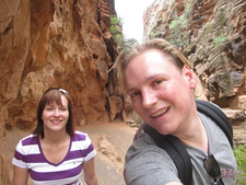 We hadden dan ook afgesproken dat we zo ver zouden gaan als we durfden en dat als we niet meer durfden we weer terug gingen. Vol goede moed gingen we op pad. De natuur was wonderschoon met rode rotsen. Ingrid concludeerde dat hier Big Thunder Mountain uit Disneyland op gebaseerd moest zijn. In Europa kennen we zulke landschappen helemaal niet.